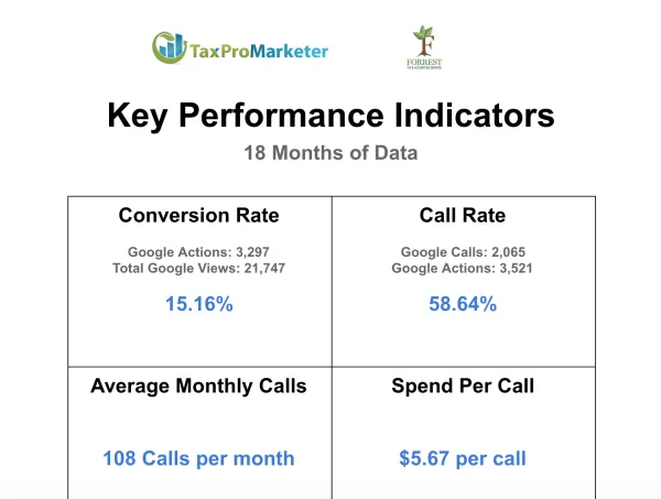 After only one year even having the site, this is how far we've come. At this rate, next year I will need to hire another full time tax preparer. You guys are THE BEST! And I get nothing but compliments about the website."